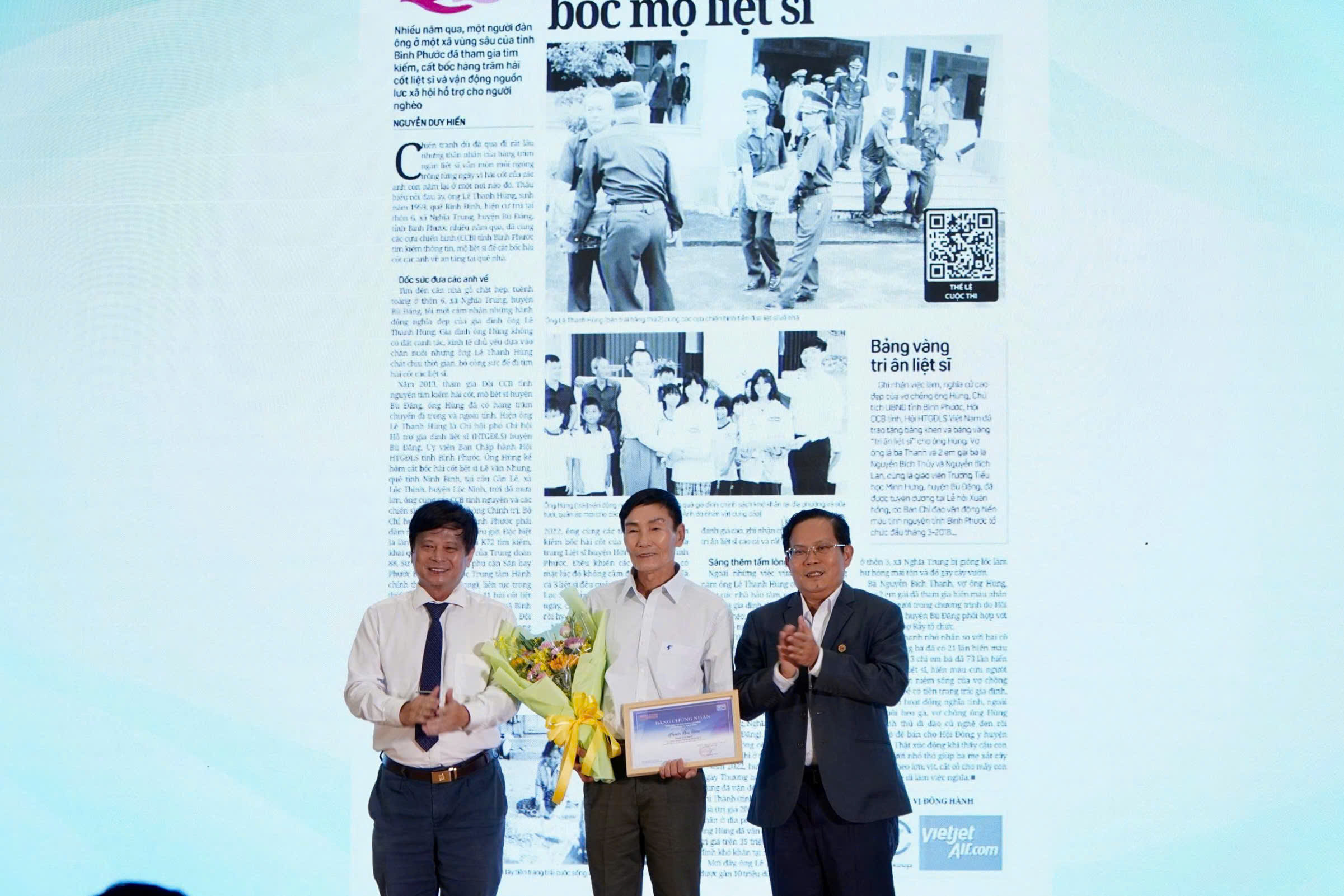 Giải nhất cuộc thi “Lòng tốt quanh ta” thuộc về tác giả Nguyễn Duy Hiến với tác phẩm “Chuyện ông Hùng bốc mộ liệt sĩ”. Nhân vật chính trong tác phẩm là ông Lê Thanh Hùng (sinh năm 1959, quê Bình Định, hiện sinh sống tại huyện Bù Đăng, tỉnh Bình Phước) – một cựu chiến binh nhiều năm tham gia hoạt động tìm kiếm và cất bốc hài cốt liệt sĩ. Dù hoàn cảnh gia đình còn khó khăn, ông vẫn bền bỉ dành thời gian, công sức cho công việc tri ân các anh hùng đã hy sinh, thực hiện hàng trăm chuyến đi cả trong và ngoài tỉnh. Tấm lòng nhân ái và sự tận tụy của ông đã lan tỏa mạnh mẽ trong cộng đồng, trở thành nguồn cảm hứng về nghĩa tình và trách nhiệm với quá khứ. Chia sẻ tại buổi lễ, tác giả Nguyễn Duy Hiến cho biết ông cảm thấy hạnh phúc, xúc động và bày tỏ lời cảm ơn đến Ban Tổ chức vì đã tạo ra một chương trình ý nghĩa, nhân văn, góp phần lan tỏa những câu chuyện đẹp trong cuộc sống.