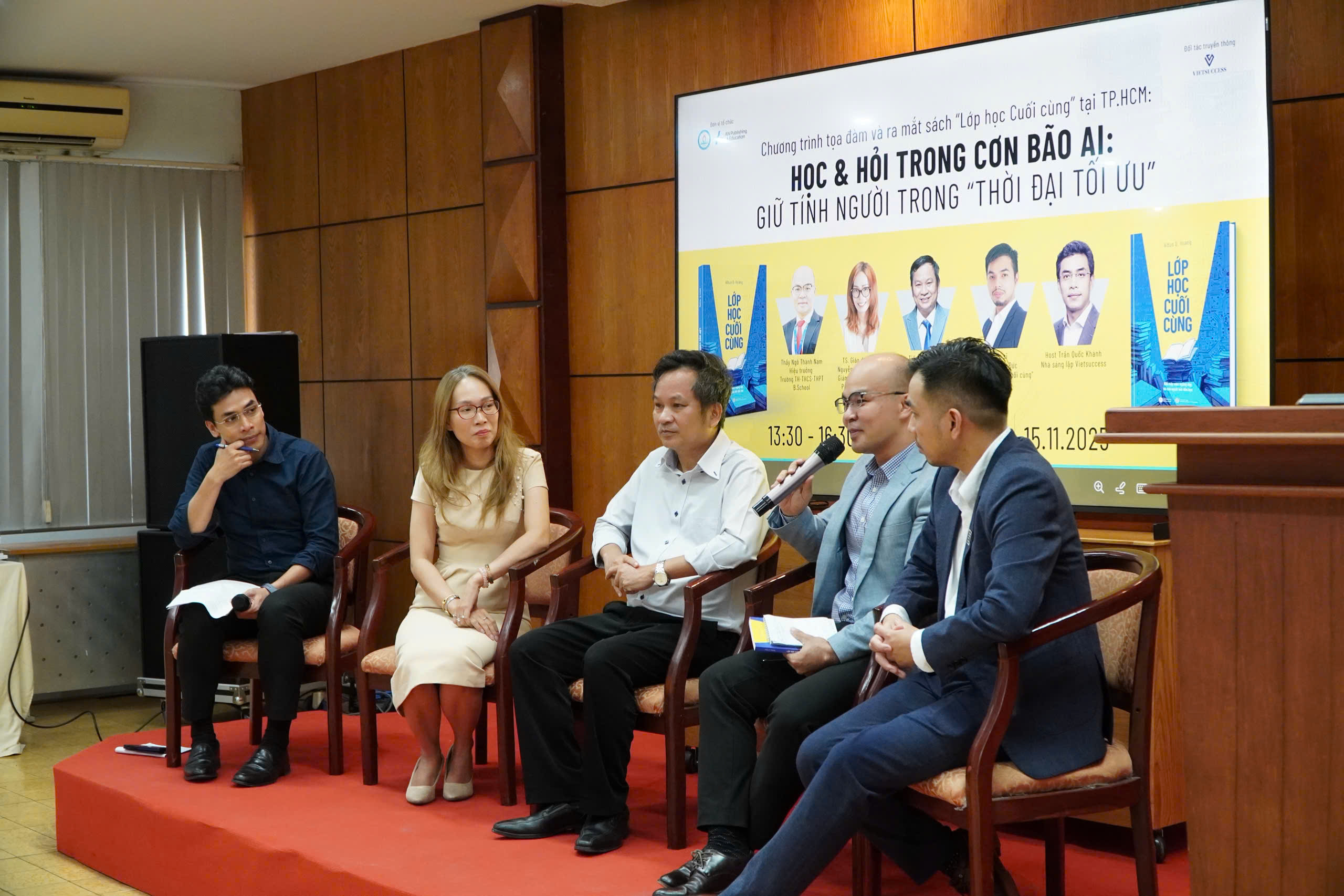 Chiều ngày 15/11/2025, Trung tâm Phát triển giáo dục và đào tạo phía Nam – Văn phòng Bộ Giáo dục và Đào tạo (Trung tâm) phối hợp cùng An Publishing & Education và VietSuccess tổ chức Tọa đàm “Học & Hỏi trong cơn bão AI” kết hợp ra mắt tác phẩm Lớp học Cuối cùng của TS. Hoàng Anh Đức. Sự kiện thu hút sự tham dự của lãnh đạo các sở giáo dục, nhà nghiên cứu, nhà giáo, chuyên gia công nghệ giáo dục và đông đảo độc giả quan tâm đến giáo dục trong thời đại trí tuệ nhân tạo.