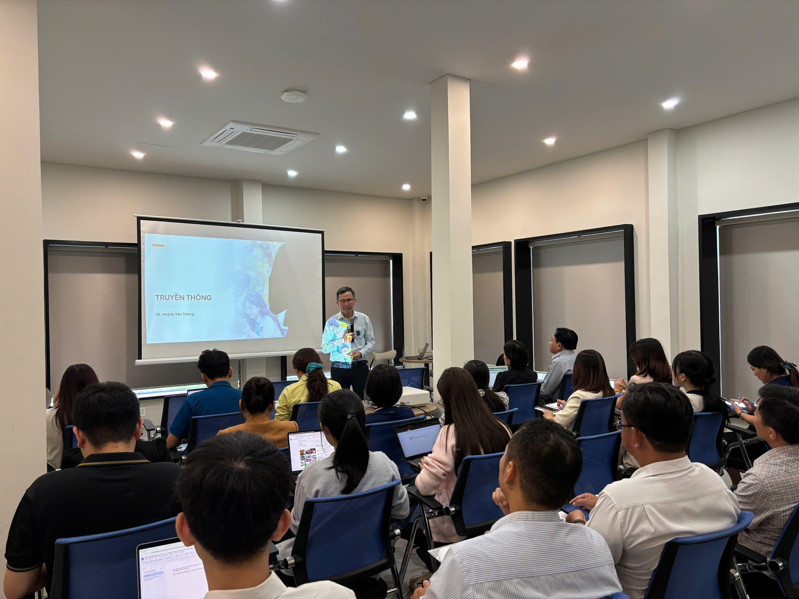 – TS Huỳnh Văn Thông – Nguyên Trưởng khoa Báo chí và Truyền thông, Trường Đại học Khoa học Xã hội và Nhân văn, ĐHQG TP.HCM đã cung cấp những kiến thức nền tảng về báo chí – truyền thông hiện đại, kỹ năng phát ngôn và làm việc với báo chí trong môi trường truyền thông đa chiều. Với cách truyền đạt mạch lạc, nhiều ví dụ thực tiễn, báo cáo viên giúp học viên hiểu rõ vai trò, trách nhiệm của người làm công tác truyền thông tại cơ sở giáo dục.